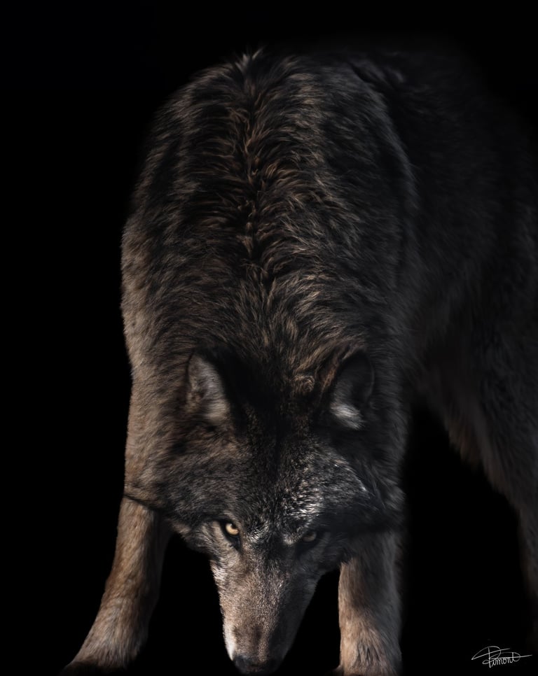 J’ai choisi de réaliser ce style de photo sur fond noir pour renforcer cette intensité : il symbolise la disparition progressive de nos milieux naturels, les habitats de tous ces animaux. Ce noir qui les enveloppe dans mes photos, c’est celui qui gagne du terrain, celui de la pénombre qui s’avance. Car peu à peu, ce sont eux que l’obscurité rattrape.