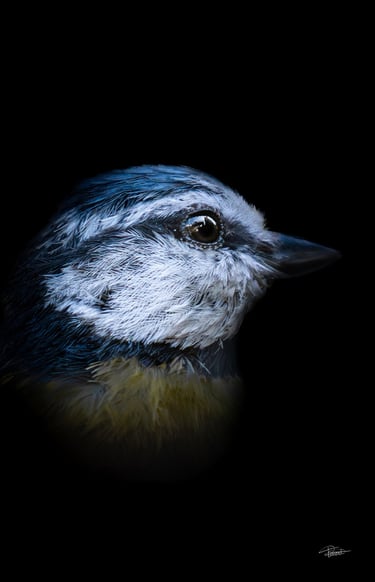 C’est dans ce silence que cette mésange bleue est apparue, vive et délicate, se posant sur une branche à quelques mètres seulement. J’ai cadré son profil, ce petit masque noir et blanc soulignant son regard vif, sa calotte bleue éclatant sous la lumière. On pourrait presque observer mon reflet dans son oeil.