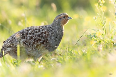Cette photo de perdrix grise a été réalisée à Maresches, sur le terrain de la Pommeraie, le lieu même qui accueille aujourd’hui mon exposition.